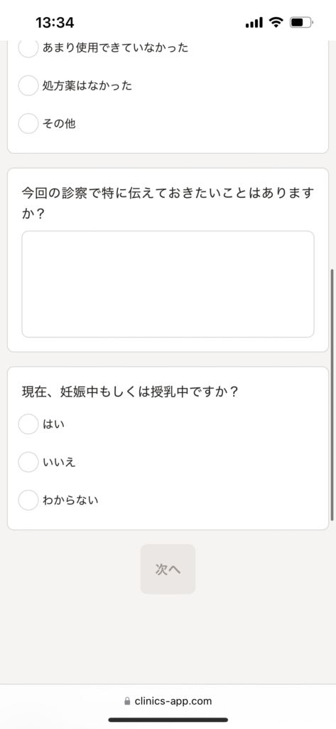 ↑再診予約時の問診画面例
